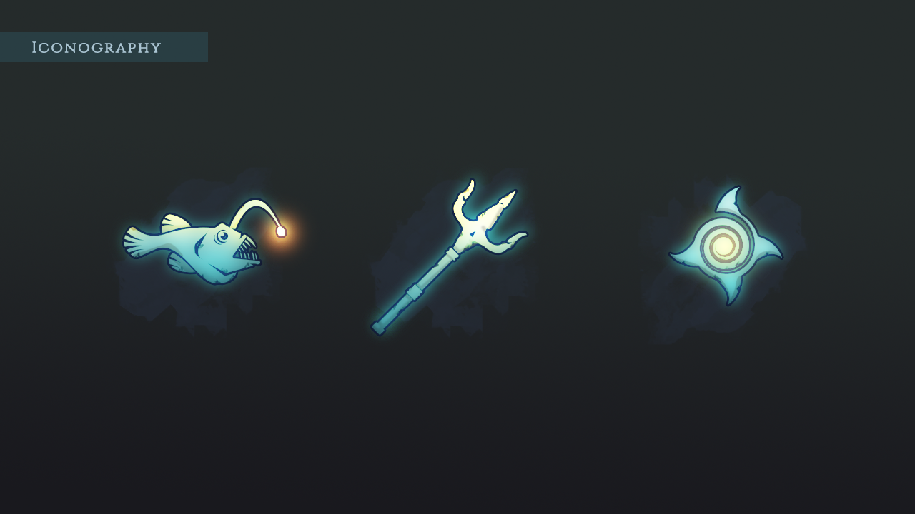 I went with an ancient Atlantean theme for the direction with lots of fish and teals. Everything was given a worn out effect, slowly weathered by the ocean.